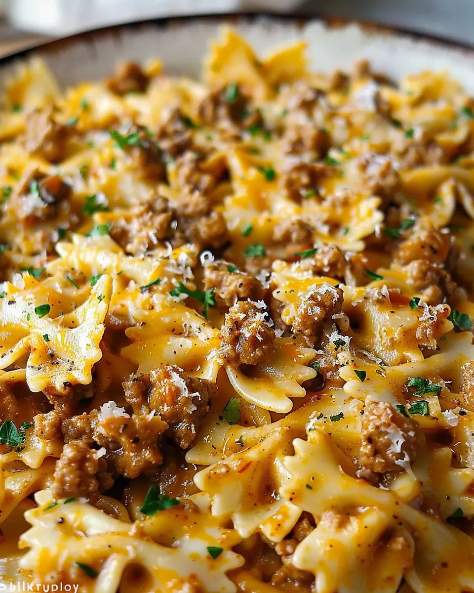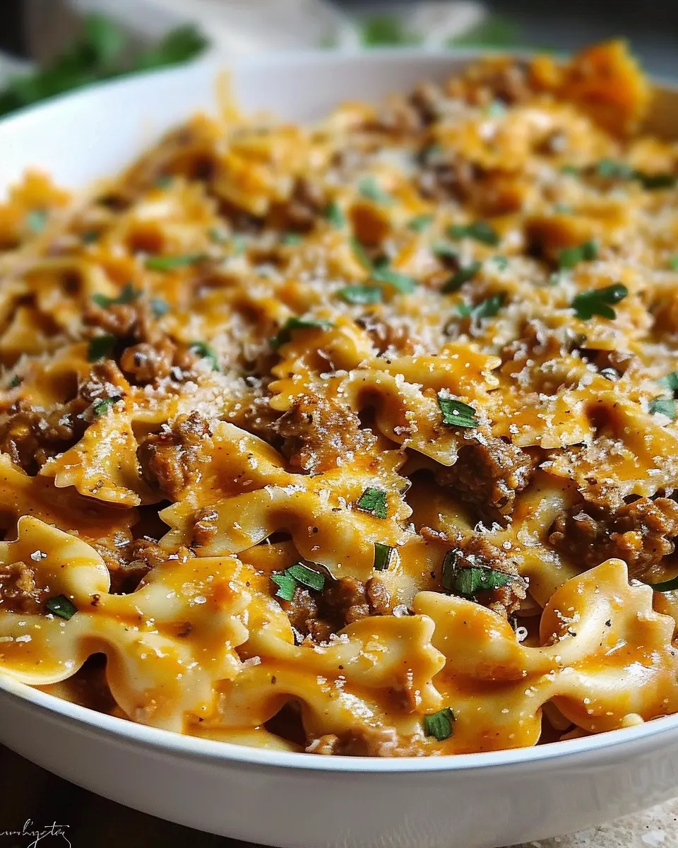 The magic happens in about 30 minutes. You’ll be browning your spiced ground beef, cooking your bowtie pasta perfectly al dente, and melding those creamy flavors together. It’s a quick process but oh so rewarding!