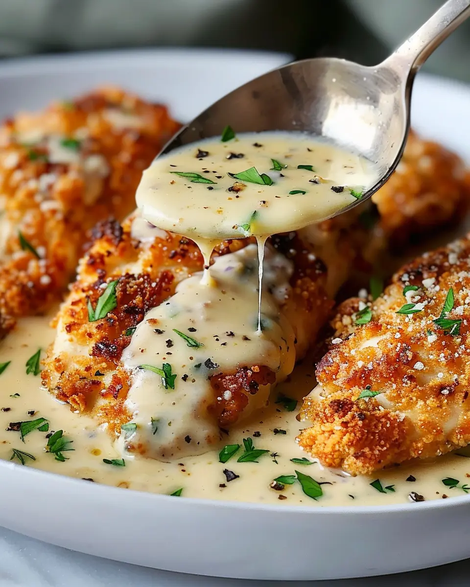 PrintCreamy Parmesan Crusted Chicken: Indulgent Garlic Sauce Recipe