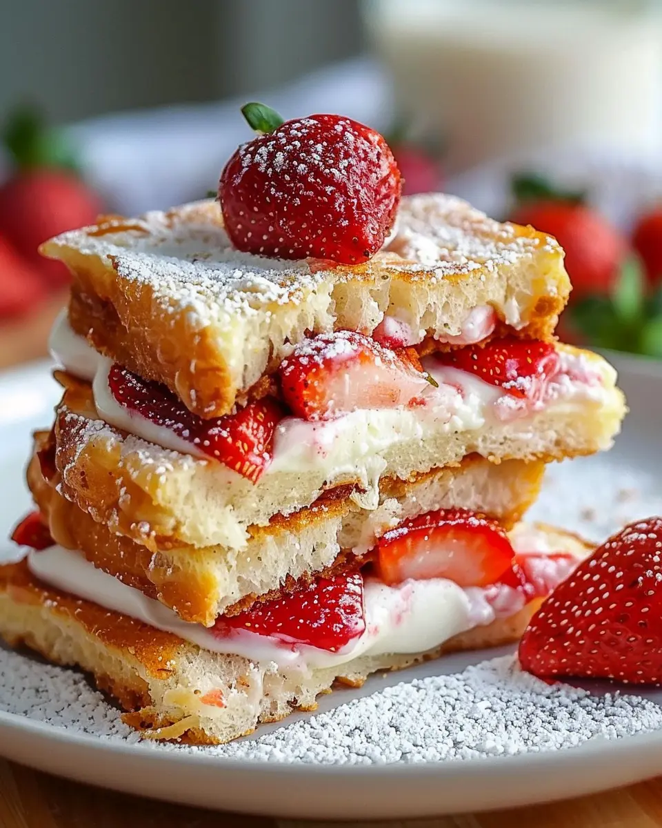 The cooking process itself won’t take long—around 10 minutes! You’ll fry these delightful sandwiches to golden perfection, ensuring that gooey cheesecake filling stays intact while mingling beautifully with the fresh strawberries.