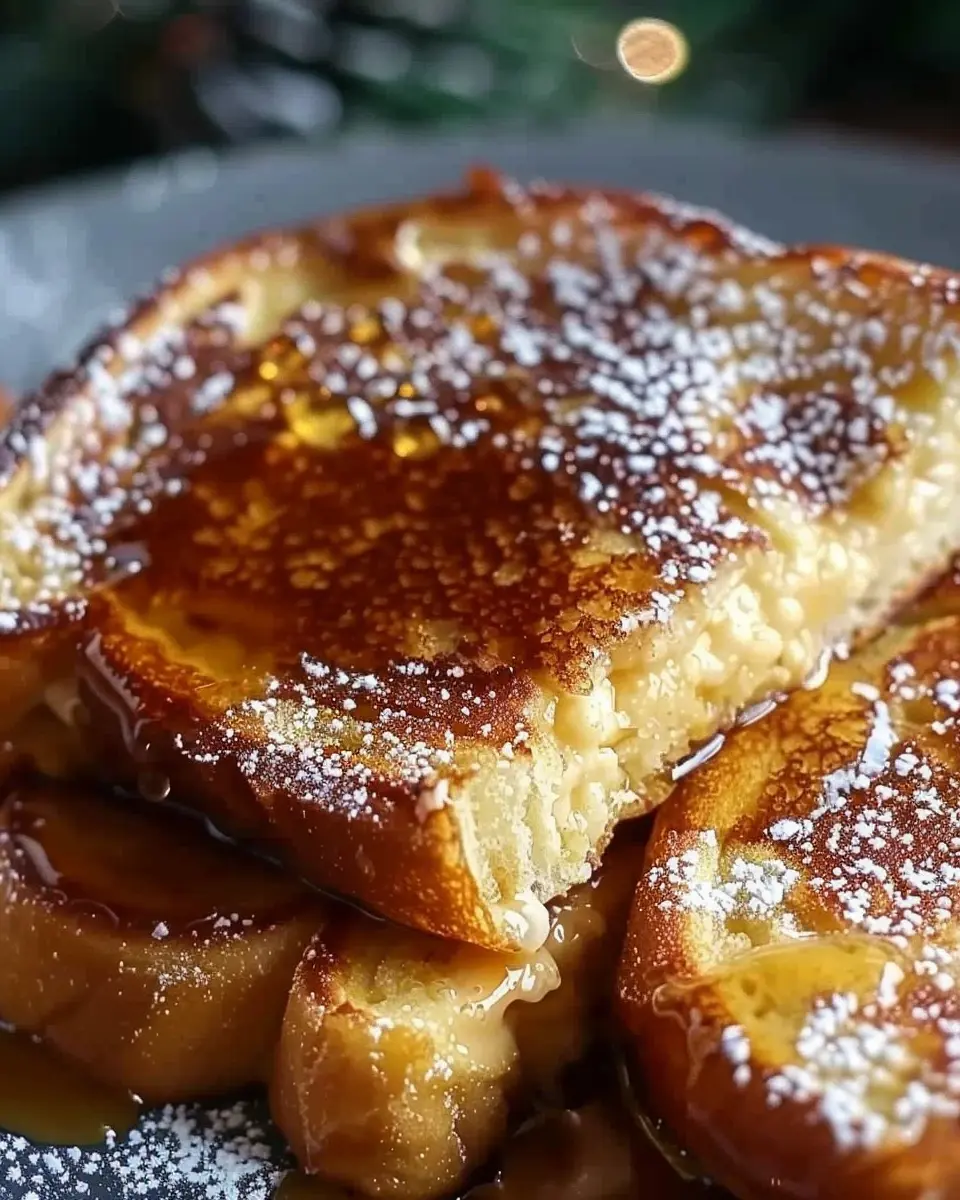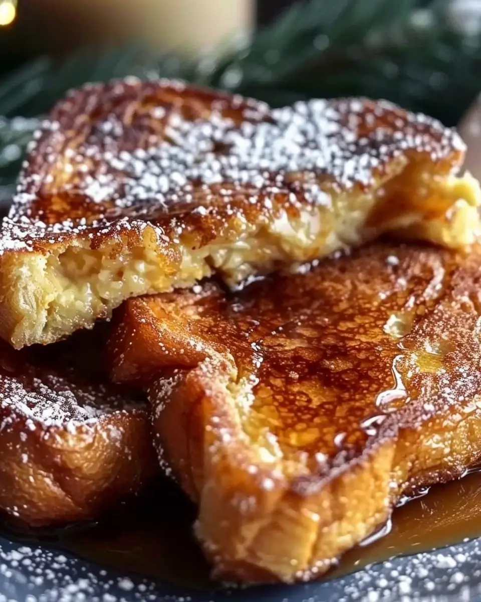 Now for the fun part—serving! Arrange the warm French toast on plates and add your favorite toppings. Think maple syrup, whipped cream, or even a sprinkle of powdered sugar. If you want some added festive flair, consider garnishing with a sprig of mint or even a few cranberries.